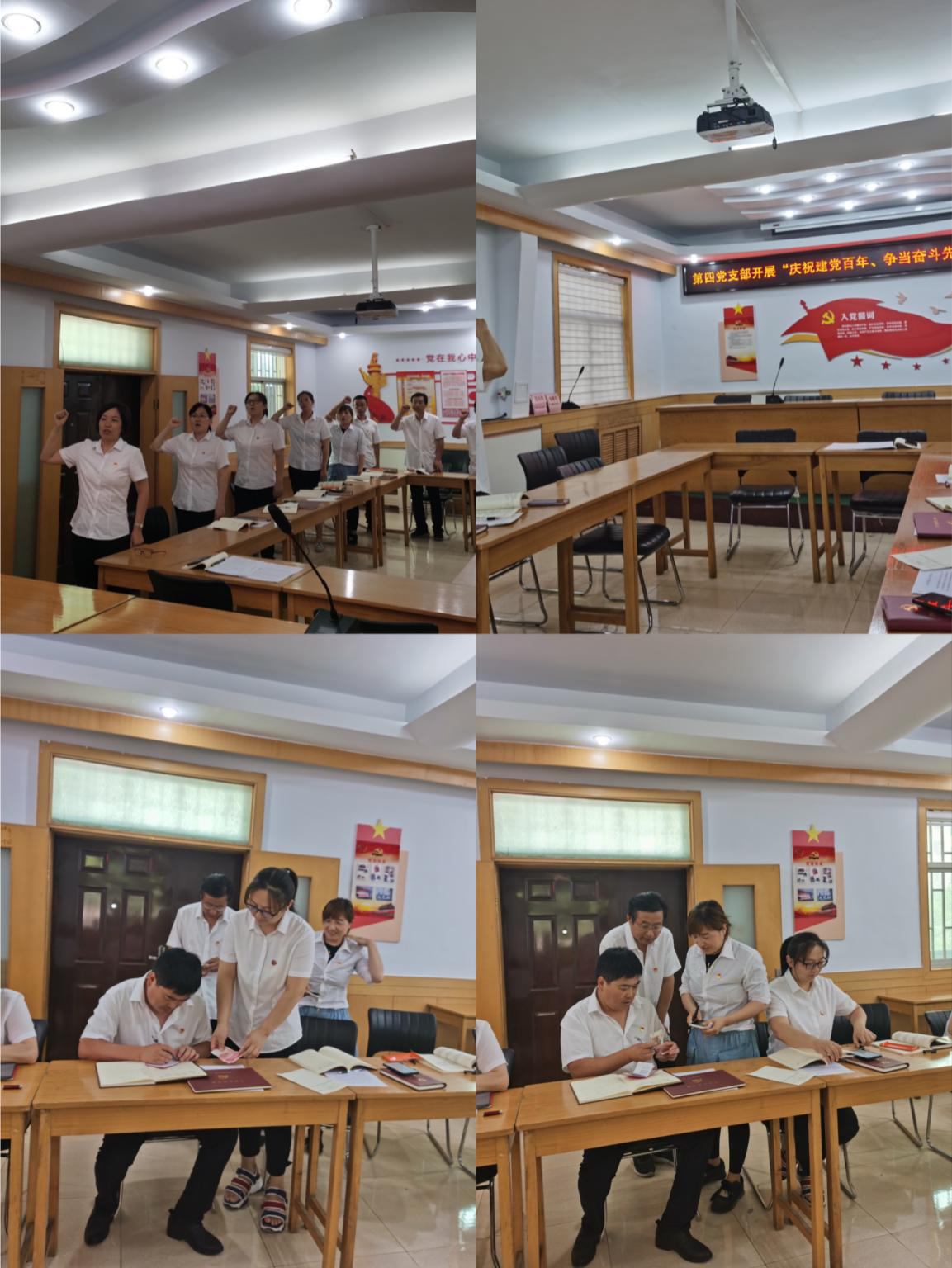 下午,支部集中收繳了本月黨費(fèi),進(jìn)行了登記。全體黨員面向黨旗重溫了入黨誓詞。