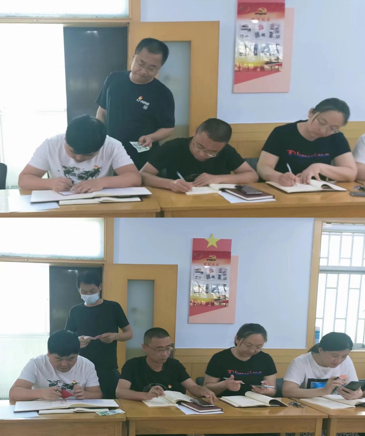 會前,全體黨員逐個向支部繳納了本月黨費(fèi),并進(jìn)行了黨費(fèi)收繳臺賬登記。