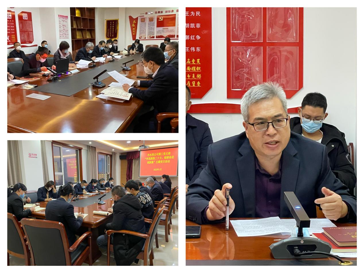 按照市委組織部《關(guān)于認(rèn)真開展2023年1月黨支部主題黨日活動(dòng)的通知》要求,結(jié)合公司黨委安排部署,1月3日下午,支部組織黨員、各科室負(fù)責(zé)人和群眾代表開展了“學(xué)思踐悟二十大、砥礪奮進(jìn)謀新篇”主題黨日活動(dòng)。