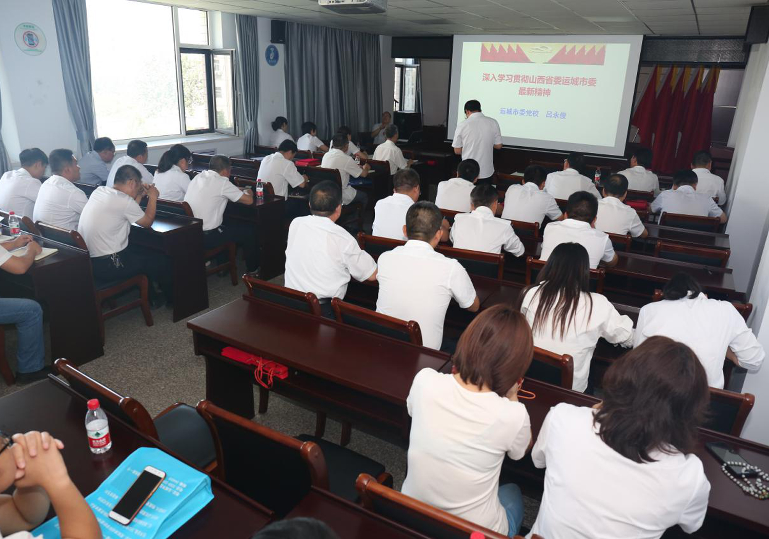 表彰大會結(jié)束后,公司特邀市委黨校公共管理教研室主任呂永俊副教授為大家講了題為《深入學習貫徹山西省委運城市委最新精神》的專題黨課,呂永俊教授以習近平視察山西重要講話精神和“三篇光輝文獻”為切入點,分別從“面臨形勢與發(fā)展思路要求、全力推動高質(zhì)量轉(zhuǎn)型發(fā)展、全力以赴保障與改善民生和全面拓展黨的建設新局面”四個方面,為大家詳細講解了我市貫徹落實習總書記重要指示精神和省委工作部署的主要做法,以及我市開拓創(chuàng)新、砥礪奮進的重大實踐。
