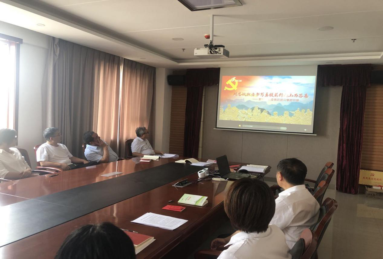 全體與會人員觀看《用忠誠擔(dān)當(dāng)書寫勇毅前行的山西答卷--新冠肺炎疫情防控斗爭啟示錄》公益片。