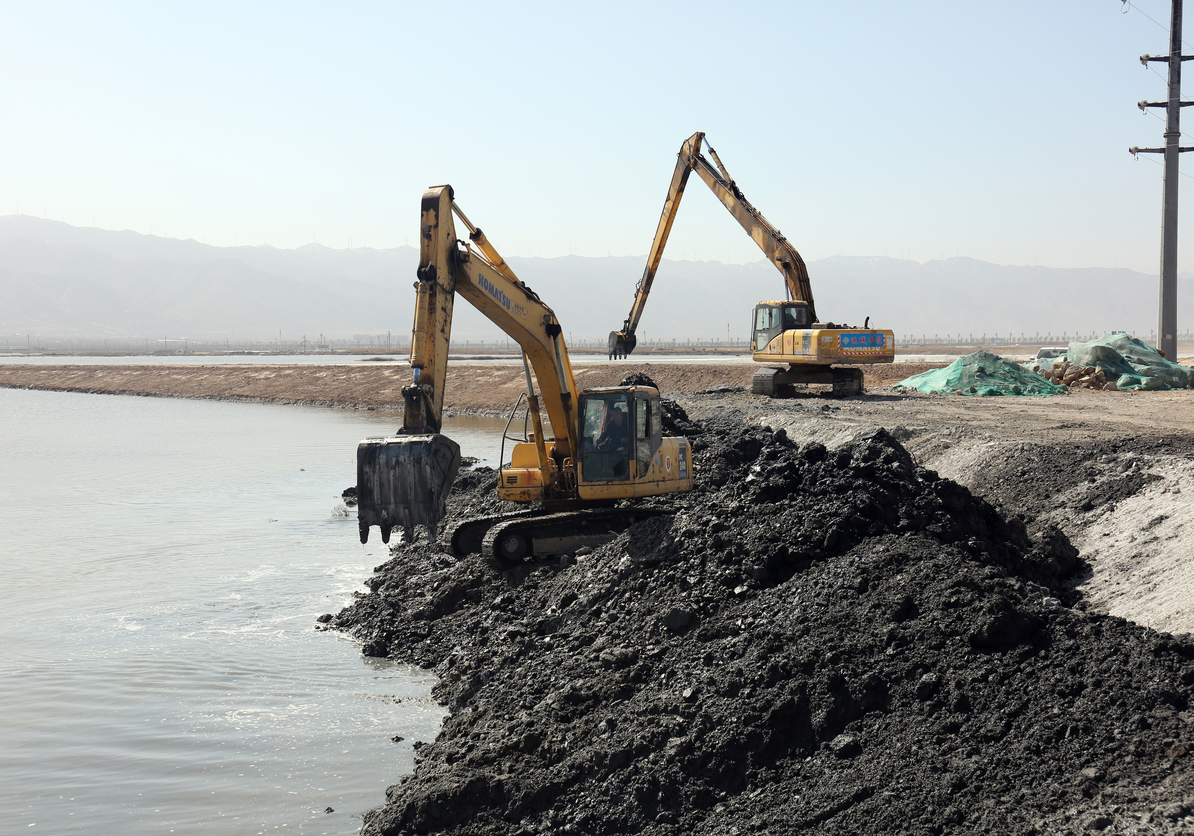 2月26日上午,公司董事長崔作銘赴鹽湖堤埝整治及生態(tài)修復項目工地督察施工進度。