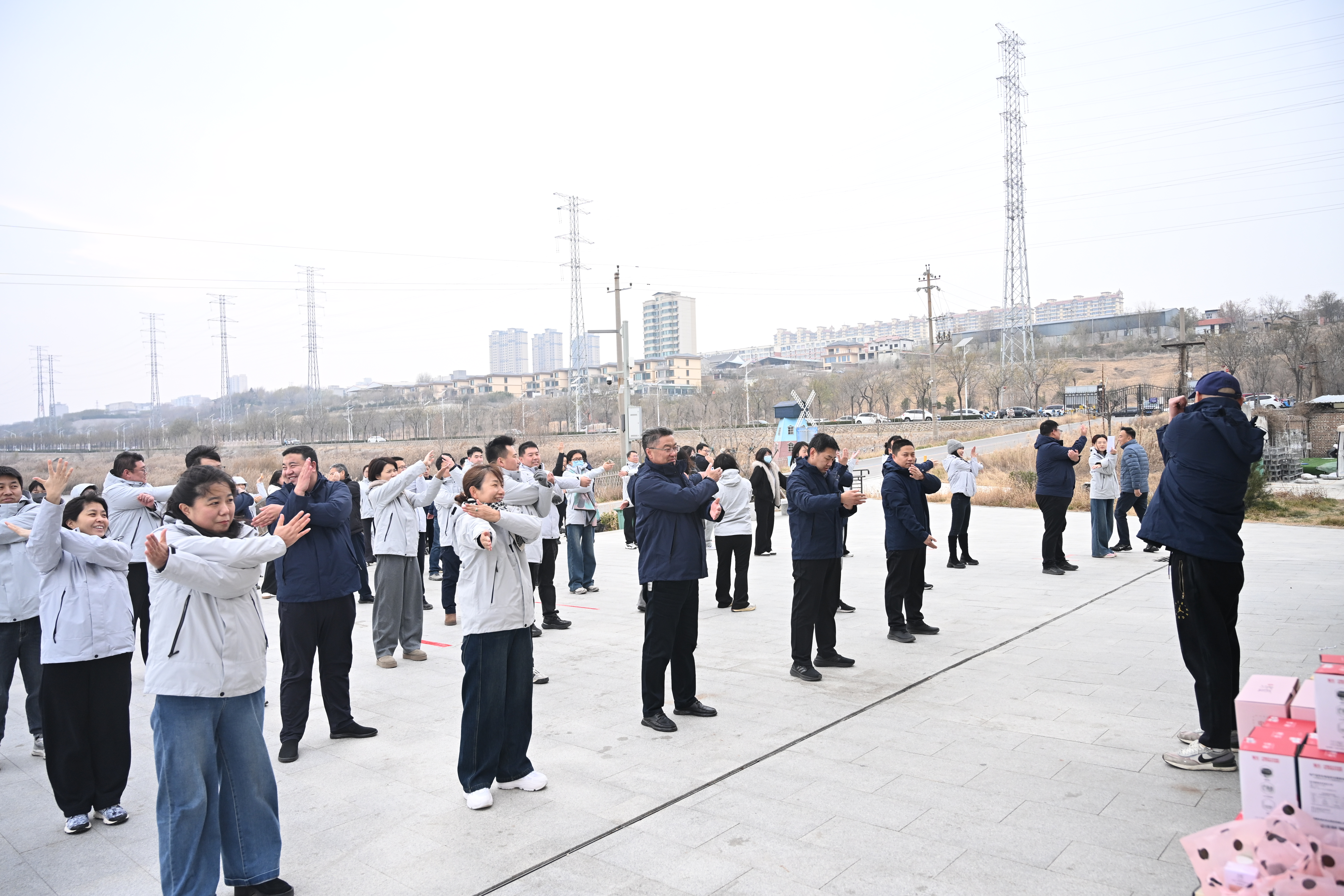活動伊始,在專業(yè)教練的帶領(lǐng)下,全體干部職工化身為“活力精靈”,迅速從辦公室的“久坐模式”切換至“運動模式”。伸臂、扭胯、拉伸……每一個動作都洋溢著力量與喜悅,現(xiàn)場瞬間匯成一片沸騰的海洋,能量滿格,熱情迸發(fā)!
