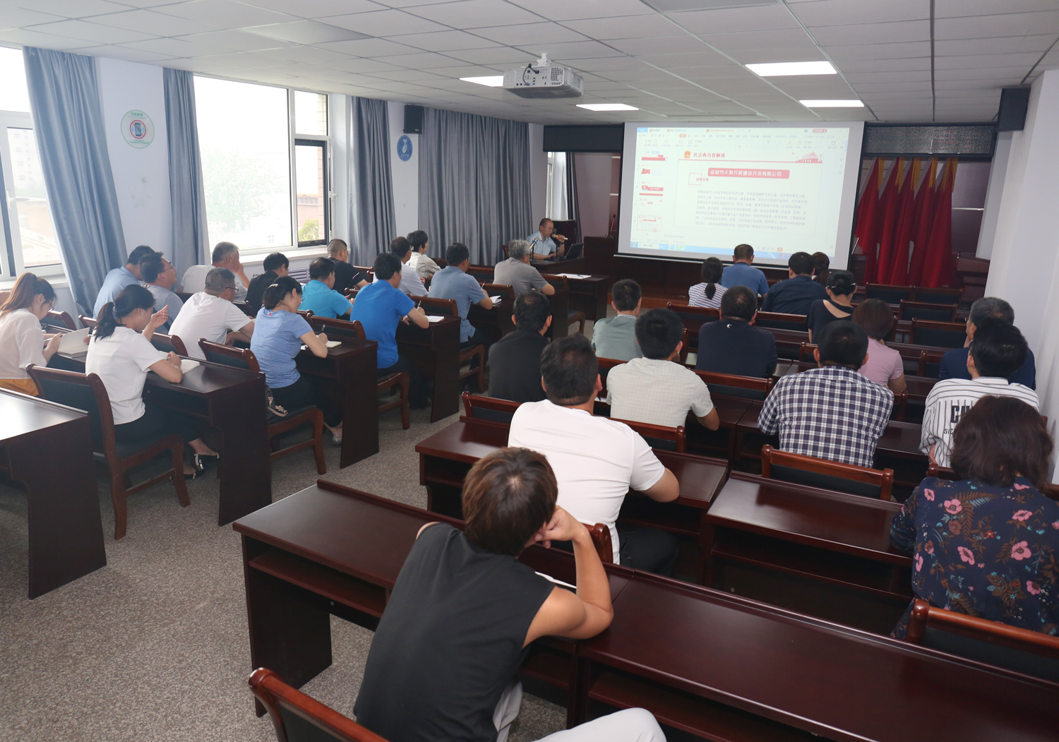 王銀良律師將《民法典》分成兩個部分解讀,第一部分為綠色原則解讀,第二部分為生活里的民法典。王銀良律師用通俗的語言和生動的例子,為大家深刻進(jìn)行了民法典法律解讀,授課內(nèi)容緊貼企業(yè)生產(chǎn)經(jīng)營,從綠色原則解讀了在水系規(guī)劃建設(shè)及生態(tài)環(huán)境保護(hù)的相關(guān)舉措上的法律制度和政策導(dǎo)向;授課內(nèi)容緊貼生活,《婚姻法》、《繼承法》、《物權(quán)法》,關(guān)系到每一個人生活的方方面面,使參會人員學(xué)習(xí)到了新的法律知識,理解和把握了《民法典》對日常生活的重要意義。