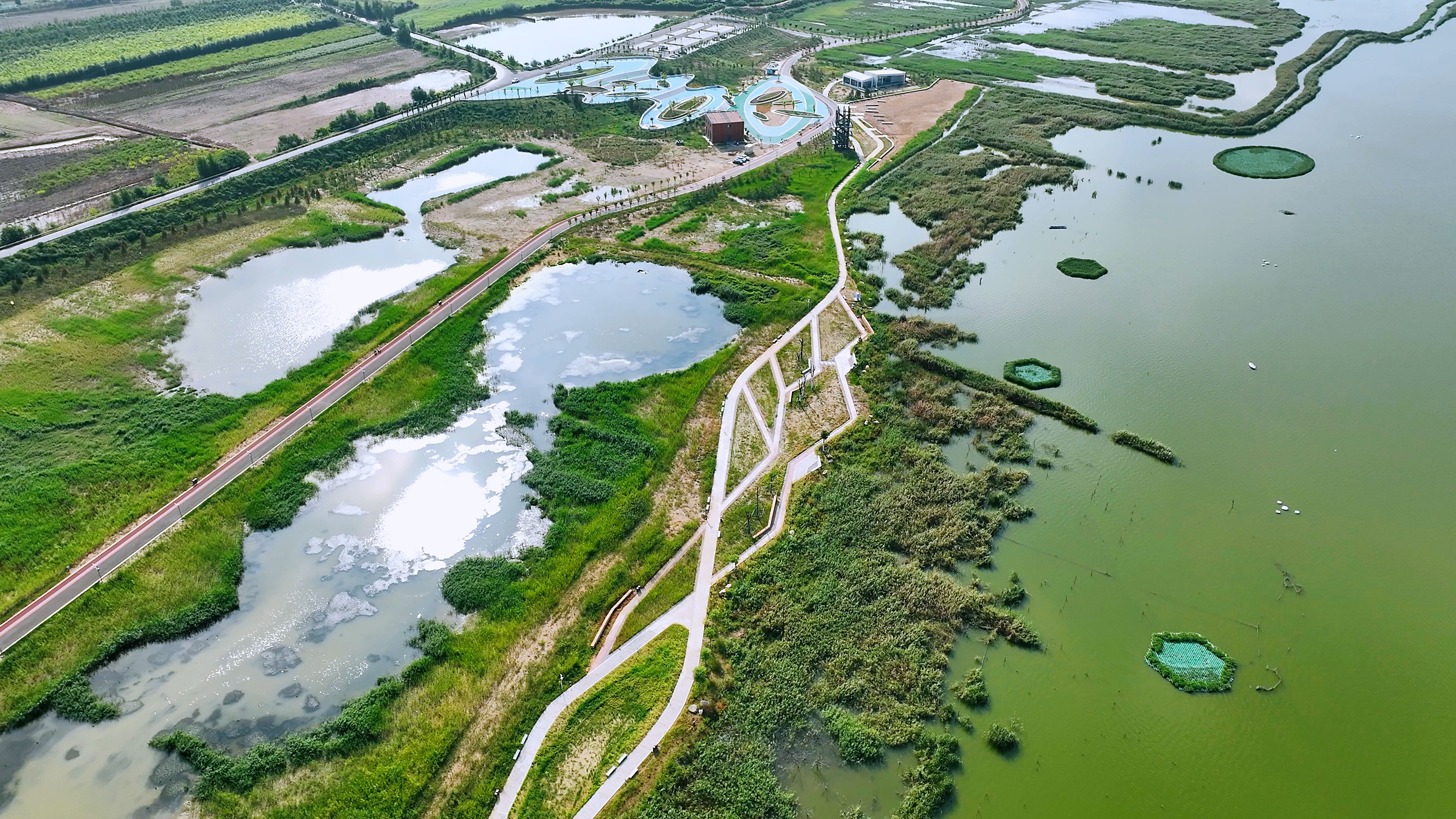 鴨子池位于鹽池東側(cè),總面積4.7平方公里,是保護鹽池重要的蓄泄洪區(qū)??偼顿Y3.4億元的鴨子池水生態(tài)綜合提升工程,作為我市“1311”重大工程項目,于2020年開始實施。2024年1月,工程榮獲山西省勘察設(shè)計協(xié)會設(shè)計三等獎;2024年6月,榮獲建筑業(yè)協(xié)會“汾水杯”獎;2024年7月,榮獲中國市政工程協(xié)會最高水平評價工程獎。在這些獎項的背后,鴨子池有何亮點,能在全國市政工程中脫穎而出?