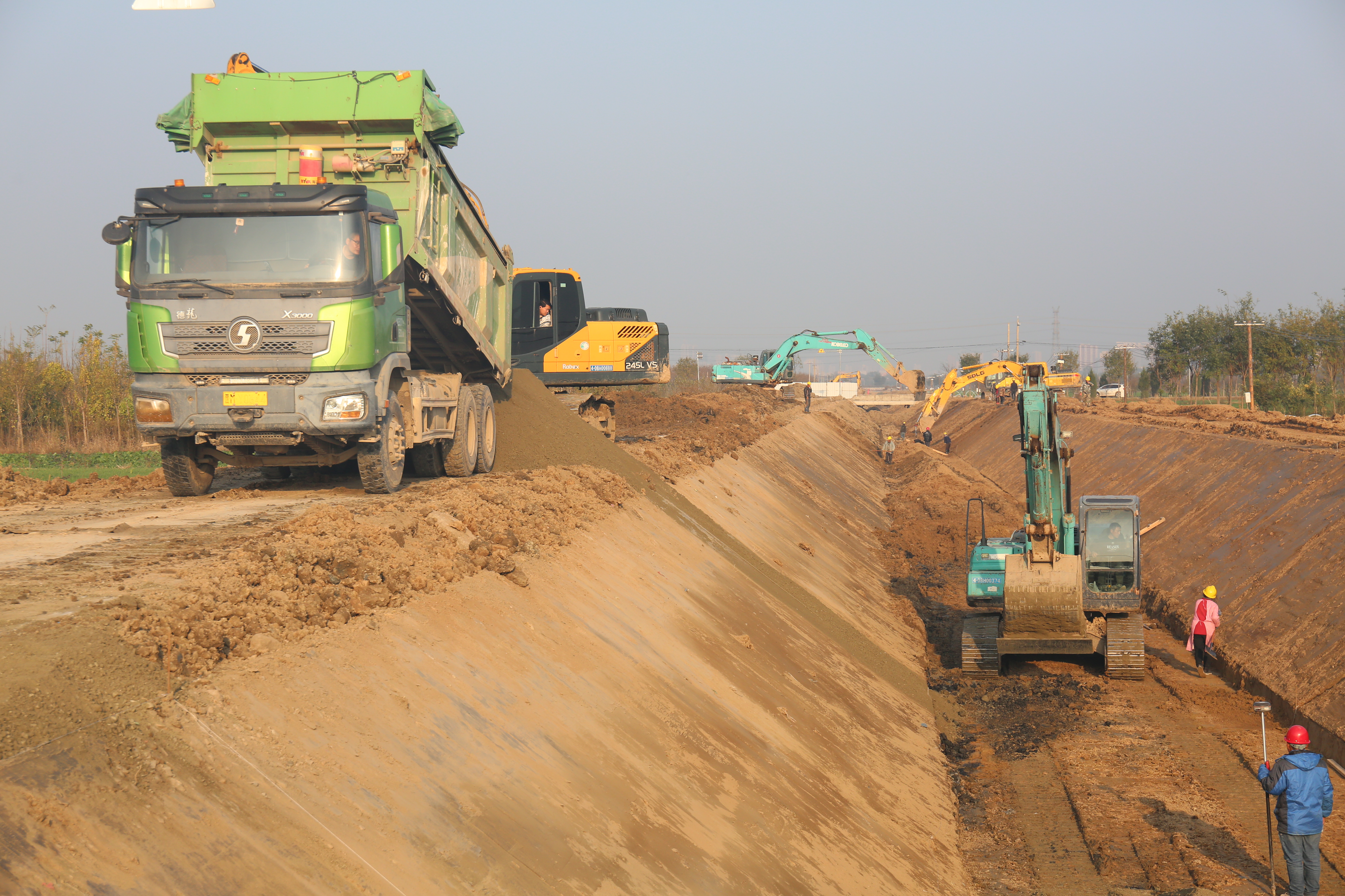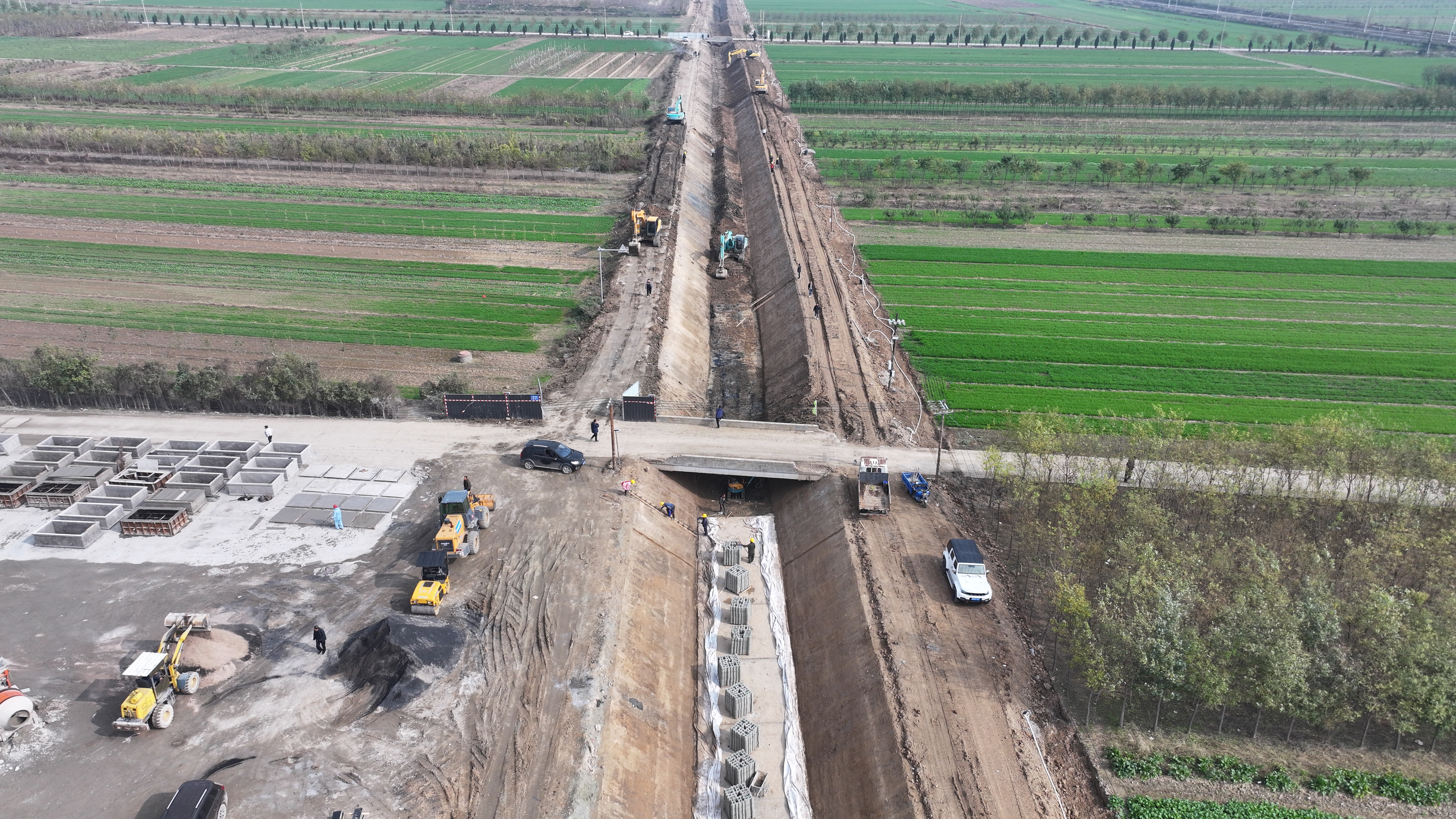 在項目施工現(xiàn)場,挖掘機、裝載機、振動碾、壓路機等多臺大型機械設備正全力運轉(zhuǎn),二十四小時作業(yè)不停工;十余名管理人員吃住在工地,隨叫隨到,發(fā)現(xiàn)問題及時解決問題,二十余名施工人員一身土一身泥,不叫苦不叫累,連續(xù)戰(zhàn)斗在工地;多個工作面同時展開施工,專人專崗,落實主體責任,各項工作井然有序,工程進度按照既定的工作目標穩(wěn)步進展。截止目前,已完成井點降水打井133眼,降水臺班2300個;清基28519m³、土方開挖9000m³、土方回填約6000m³、砂礫石墊層200m;渠道底板混凝土澆筑200m。